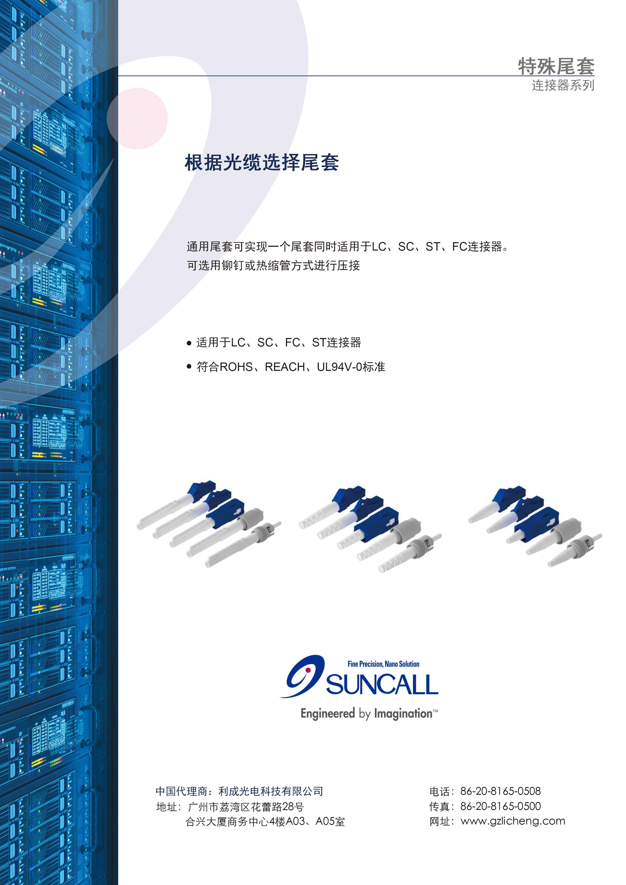 SUNCALL 首頁 > 技術(shù)支持 > 產(chǎn)品單張 > SUNCALL 特殊尾套連接器 來源:本站作者:admin日期:2020/2/20閱讀 0 上一篇:LC 推拉式 Uniboot 連接器 下一篇:可彎曲尾套連接器