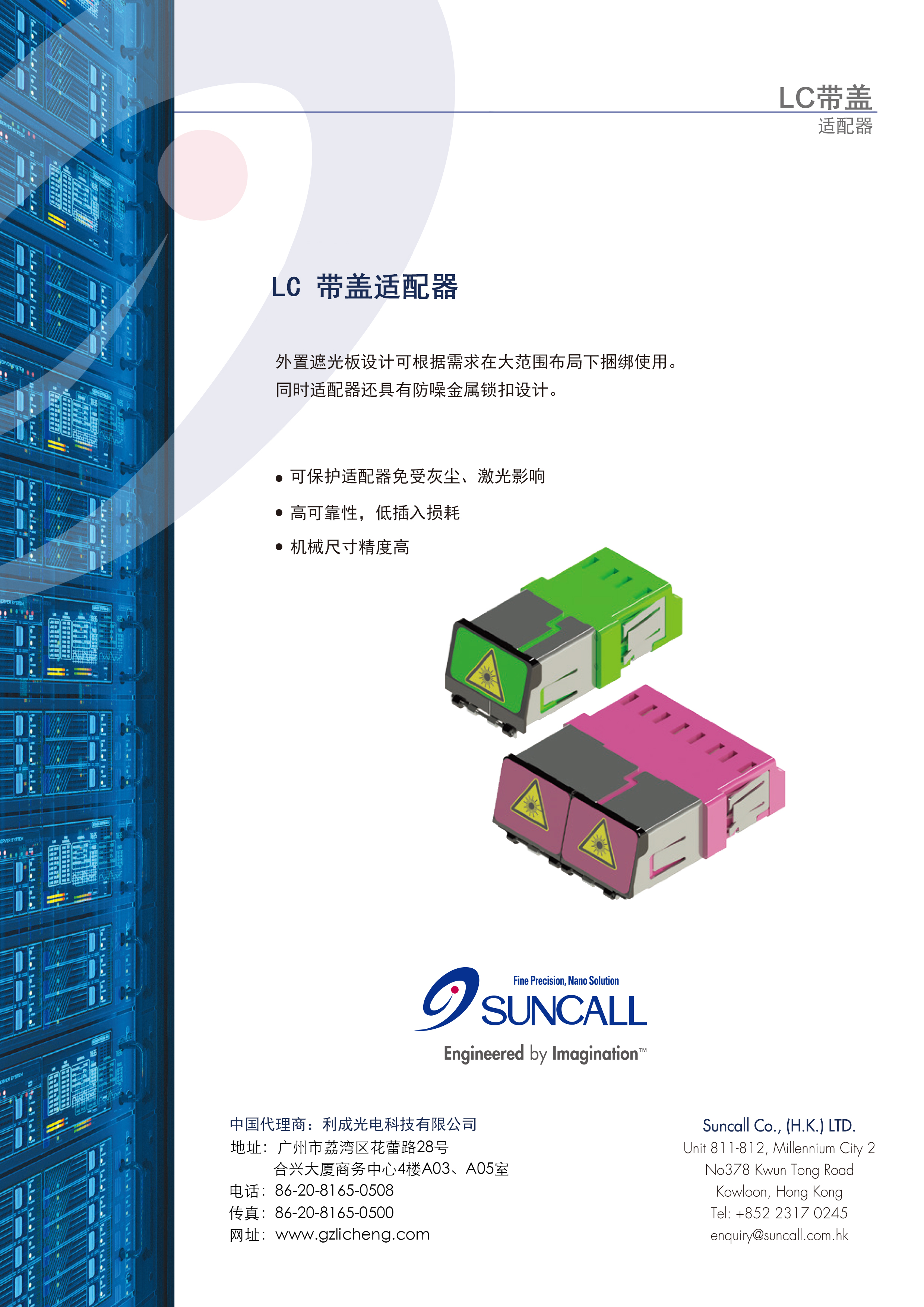 SUNCALL 首頁 > 技術支持 > 產(chǎn)品單張 > SUNCALL LC 帶蓋適配器 來源:本站作者:admin日期:2020/2/20閱讀 0 上一篇:高密度MPO連接器 下一篇:LC 可互換極性Uniboot