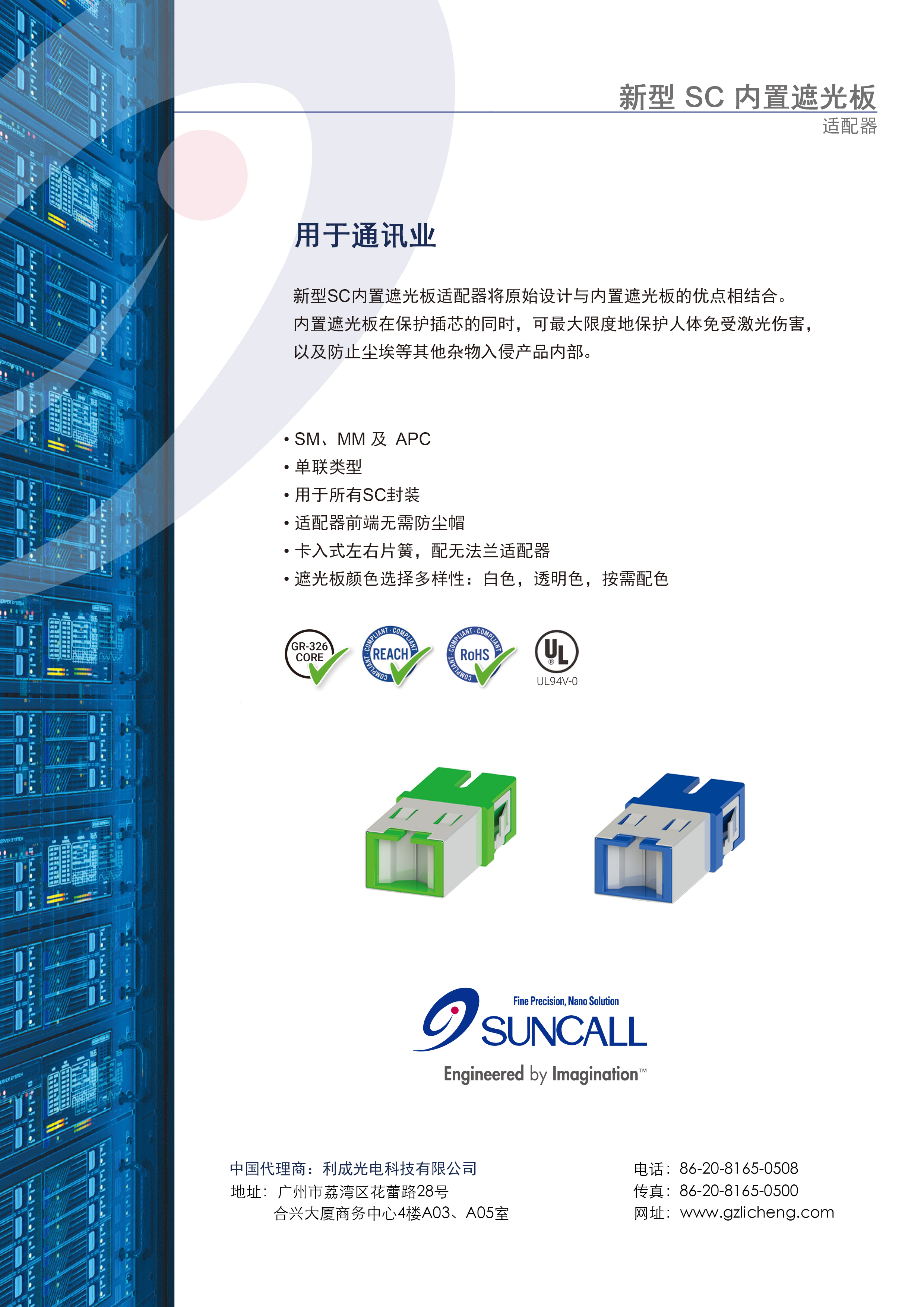 SUNCALL 首頁 > 技術支持 > 產品單張 > SUNCALL SC內置遮光板適配器 來源:本站作者:admin日期:2020/2/20閱讀 0 上一篇:LC/SC 3.0mm熱縮管連接器 下一篇:新型LC內置遮光板適配器